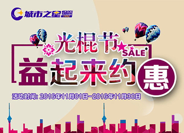 11月1日到11月30日期間,凡在阿里巴巴和慧聰網(wǎng)選擇城市之星下單并成功發(fā)貨的客戶均可參與以上活動的優(yōu)惠。